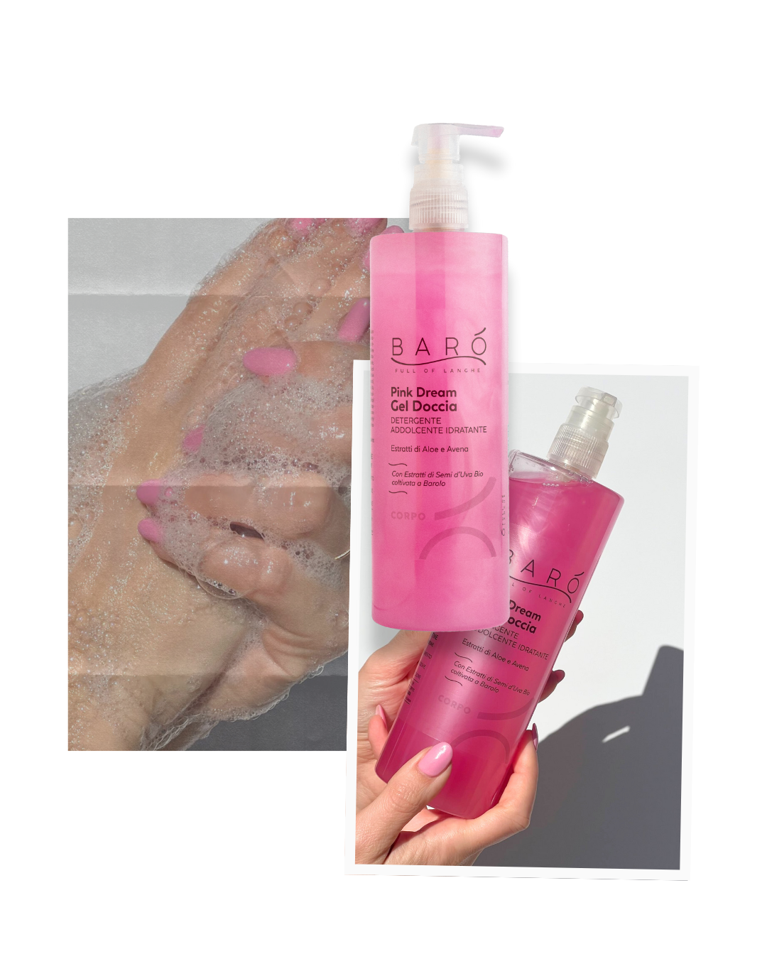 Unsere Abendkategorie -Reise am Abend beginnt mit einer Umarmung der Weichheit dank des Duschgels Pink Dream (500 ml), weicher Feuchtigkeitscreme, die eine Antioxidant -Aktion ausführt. Der Aloe -Extrakte, Hafer und Polyphenole Antioxidans von organischen Trauben, die in Barolo gezüchtet wurdenWickeln Sie es in ein süßes entspannendes Verwöhnung.